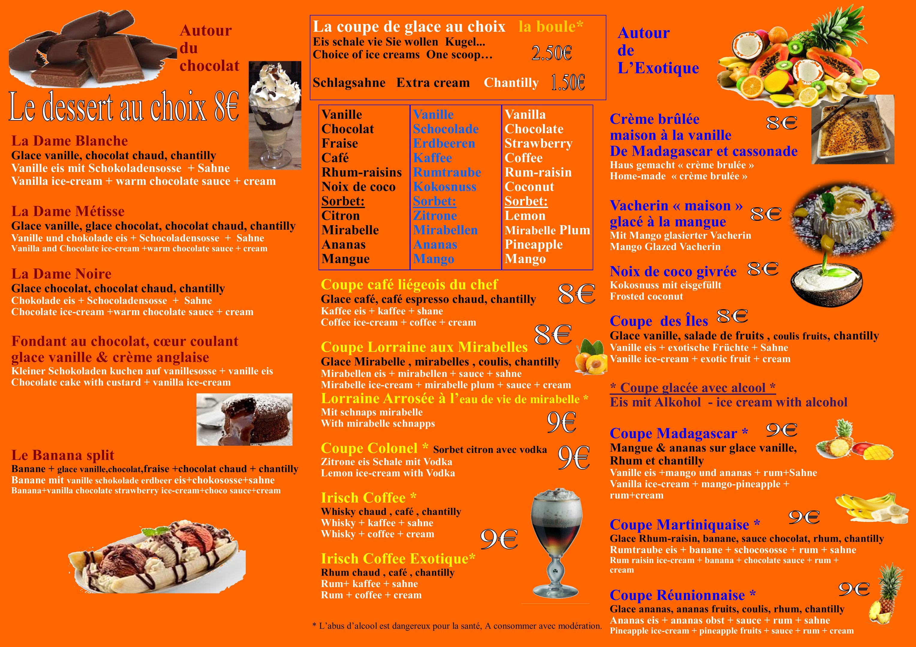 Carte des desserts